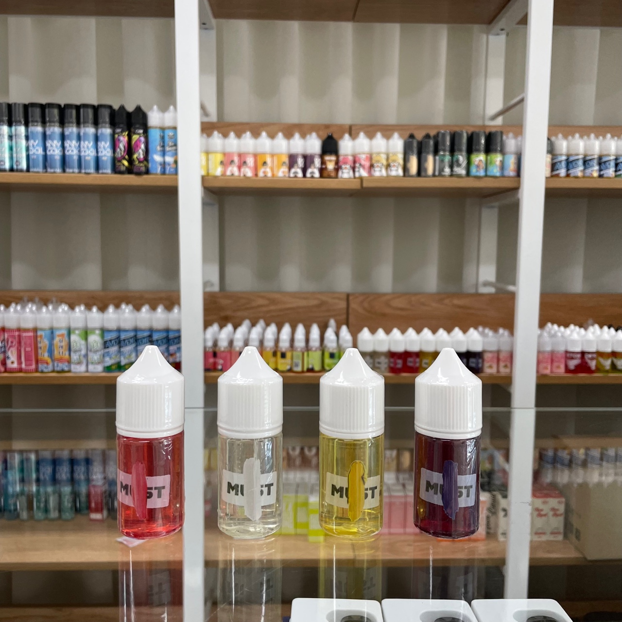 전시되어 있는 액상들을 보고 많이 관심 가져주시고 시연을 해보신 후 구매해 가시는 분들도 많이 계십니다.